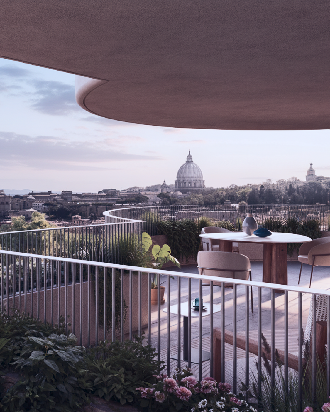 Living here means experiencing Rome in perfect harmony, with private horizons suspended between sky and city, offering a new, intimate, contemporary perspective.